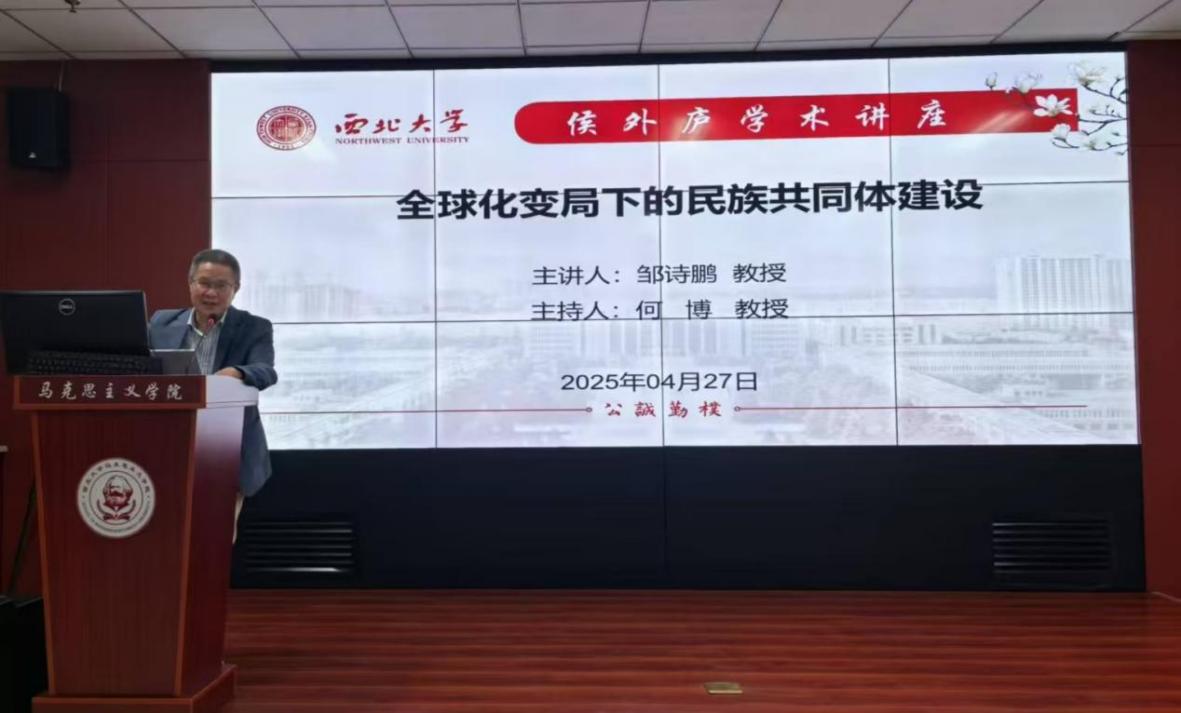 4月27日下午,国家级人才计划获得者、中国马克思主义哲学史学会副会长、复旦大学哲学学院邹诗鹏教授受邀做客MK在线“侯外庐学术讲座”第423讲,作了题为“全球化变局下的民族共同体建设”的学术讲座。讲座由马克思主义学院何博教授主持,学院教师和博、硕士研究生共80余人参加。