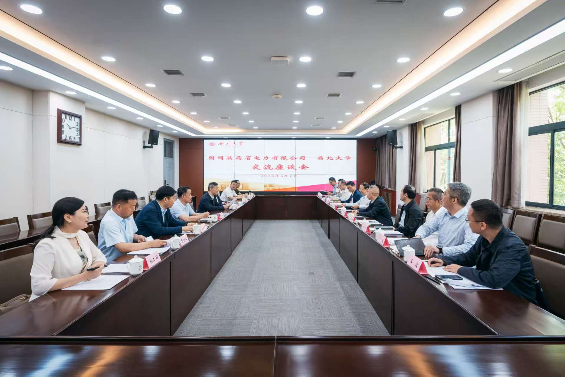 5月7日,校党委书记蒋林、校长孙庆伟在长安校区与国网陕西省电力有限公司董事、总经理、党委副书记孙强一行举行会谈。校党委常委、副校长李振海,国网西安供电公司党委书记、副总经理王东,学校相关职能部门和国网陕西省电力有限公司相关单位负责人参加座谈。