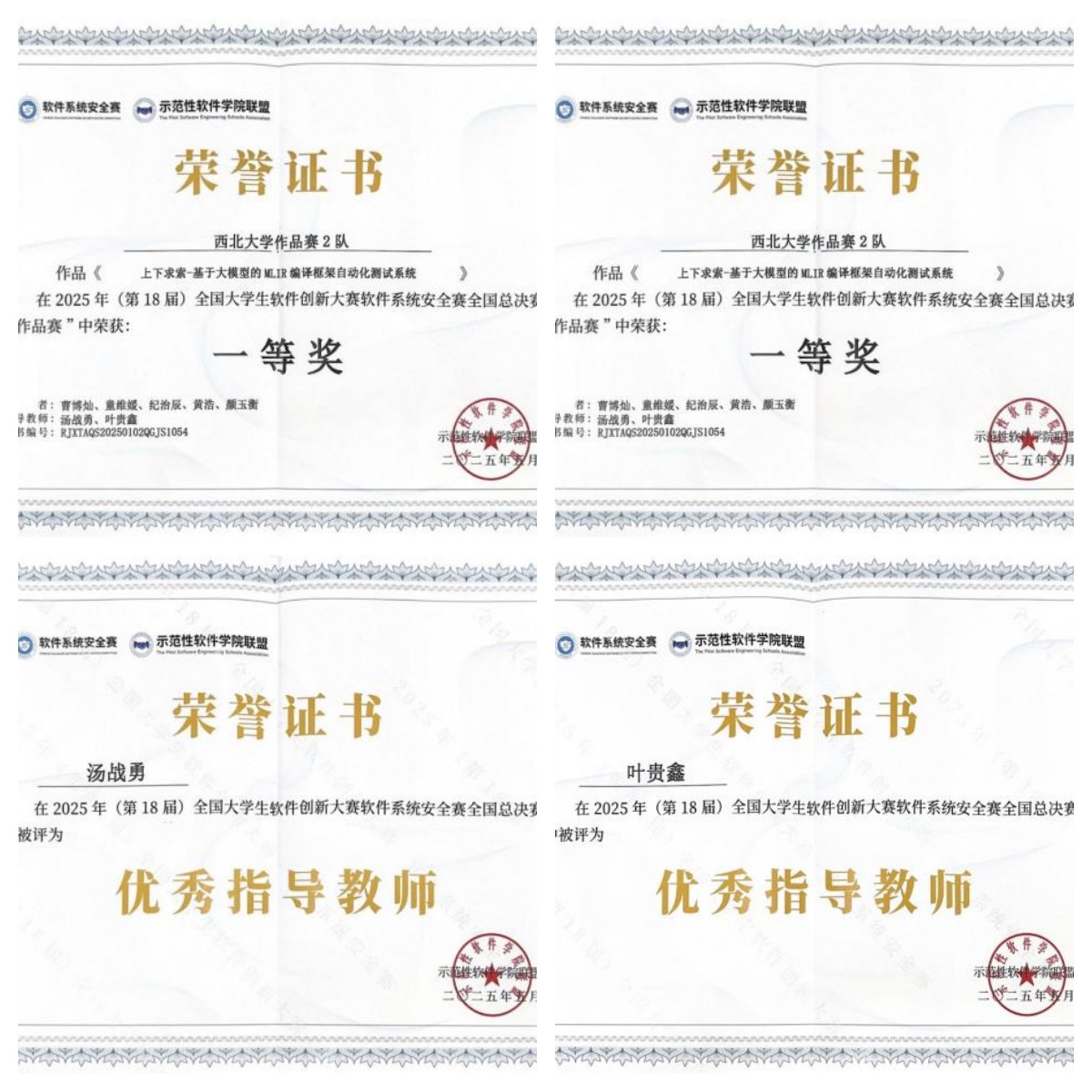 5月17日至18日,由示范性软件学院联盟主办的2025年第18届全国大学生软件创新大赛-软件系统安全赛全国总决赛圆满落幕。MK在线信息科学与技术学院的两支参赛队伍从全国406所高校1780支队伍中胜出,分别摘得作品赛一等奖第一名、攻防赛二等奖的佳绩。汤战勇和叶贵鑫荣获“优秀指导教师一等奖”。
