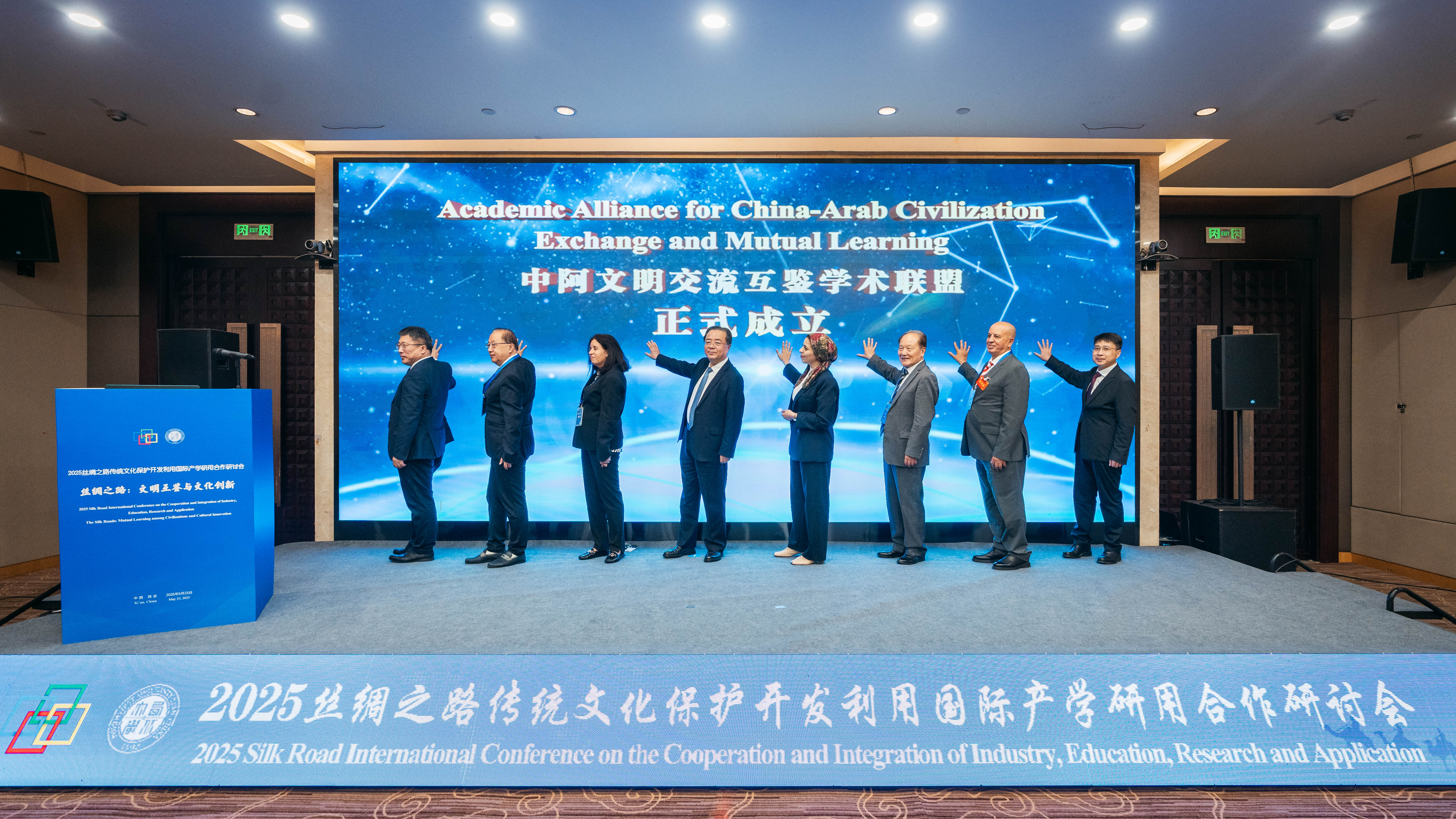 会上,由MK在线中东研究所、复旦大学中东研究中心、中阿改革发展研究中心、宁夏大学中国阿拉伯研究院、摩洛哥穆罕默德五世大学、阿尔及尔第三大学、苏伊士运河大学共同发起的“中阿文明交流互鉴学术联盟”正式启动。开幕式上揭牌了“丝路沿线国家情势智能感知实验室”,举行了“区域国别史译丛·非洲史”启动仪式、“吉尔吉斯斯坦矿业科学院院士”授予仪式、聘任阿盟大使为MK在线国际顾问等一系列活动,推动中国与中亚国家、中国与阿拉伯国家相关高校和研究机构合作的机制化,提升合作水平。