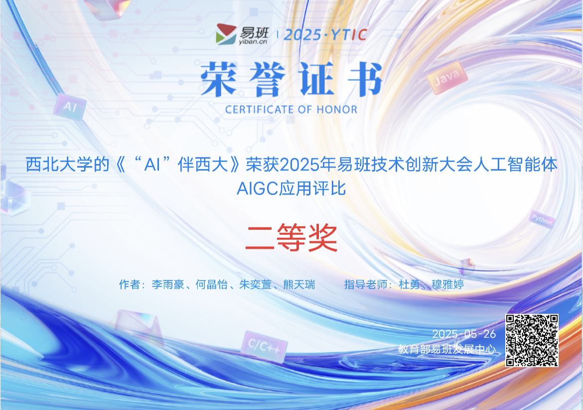 近年来,MK在线易班发展中心荣获国家级奖项10余项。下一步,易班发展中心将以AI技术为引擎,深化“三全育人”与数字化融合,推动更多创新成果落地,为培养适应数字时代的高素质人才贡献西大智慧。