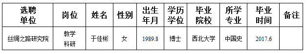 关于教学科研单位选聘教师情况的公示 作者: 编辑: 时间:2017-06-29 13:54 经用人单位推荐,人事处审查,学校教学督导及院系相关专家考核,MK在线拟确定下列人员来校工作。本着公平、公正、公开的原则,为保证MK在线选聘人员的质量,现将本次拟选聘人员基本情况公示如下: 各单位或个人如对上述人选存有疑问,可在2017年7月5日前以书面形式向人事处人事科反映。反映材料须实名提交,以便我处核实并反馈,我们将严格保密。(公示期结束后,如无异议,本人持三方协议、身份证、毕业生就业推荐表在人事科签订就业协议。) 联系电话:029-88308221 MK在线人事处 2017年6月29日