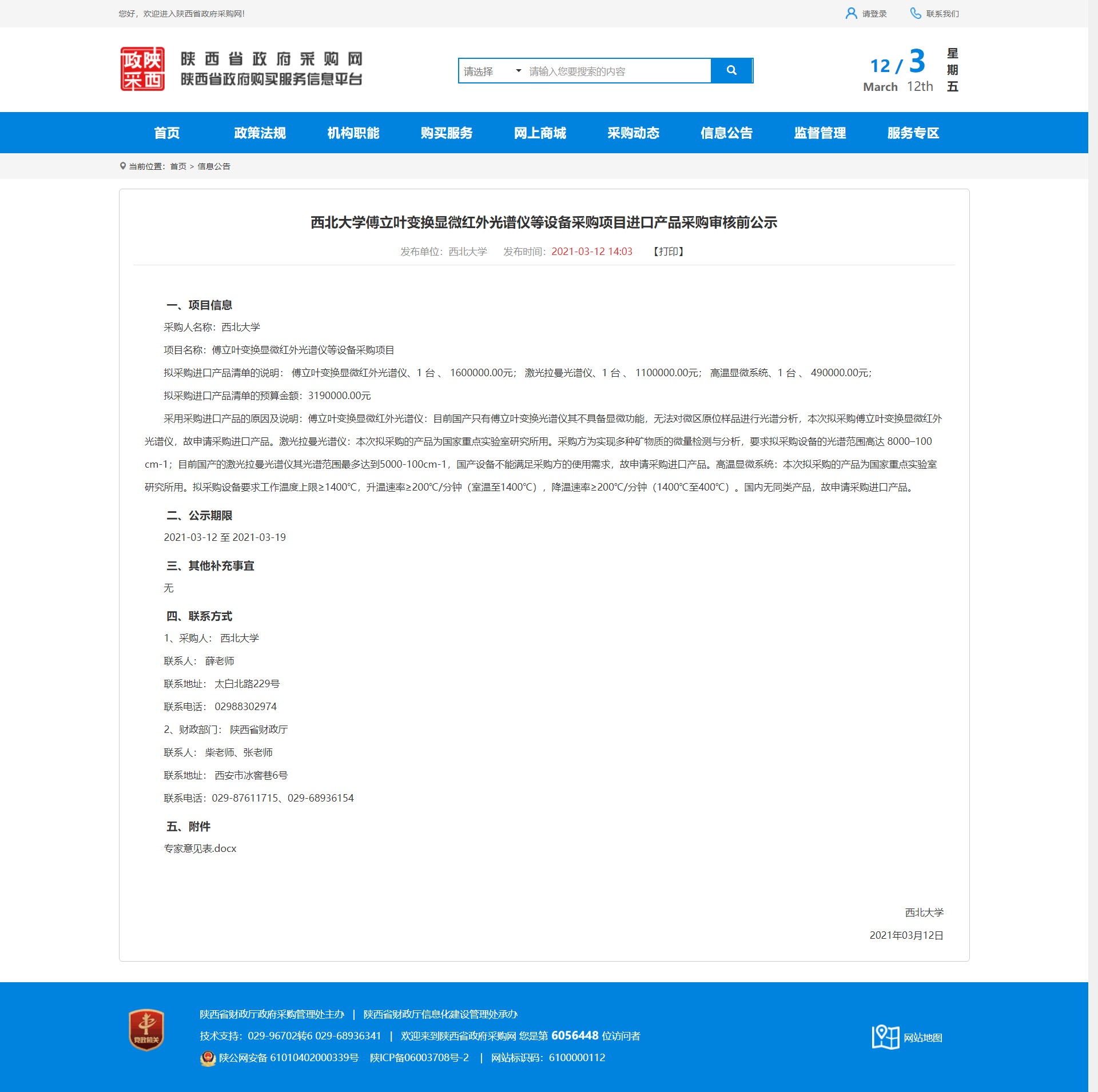 MK在线傅立叶变换显微红外光谱仪等设备采购项目进口产品采购审核前公示 作者: 编辑:薛利娟 时间:2021-03-12 原公告地址:http://www.ccgp-shaanxi.gov.cn/notice/noticeDetail.do?noticeguid=8a85be3377b2eca3017823fb30ad533f
