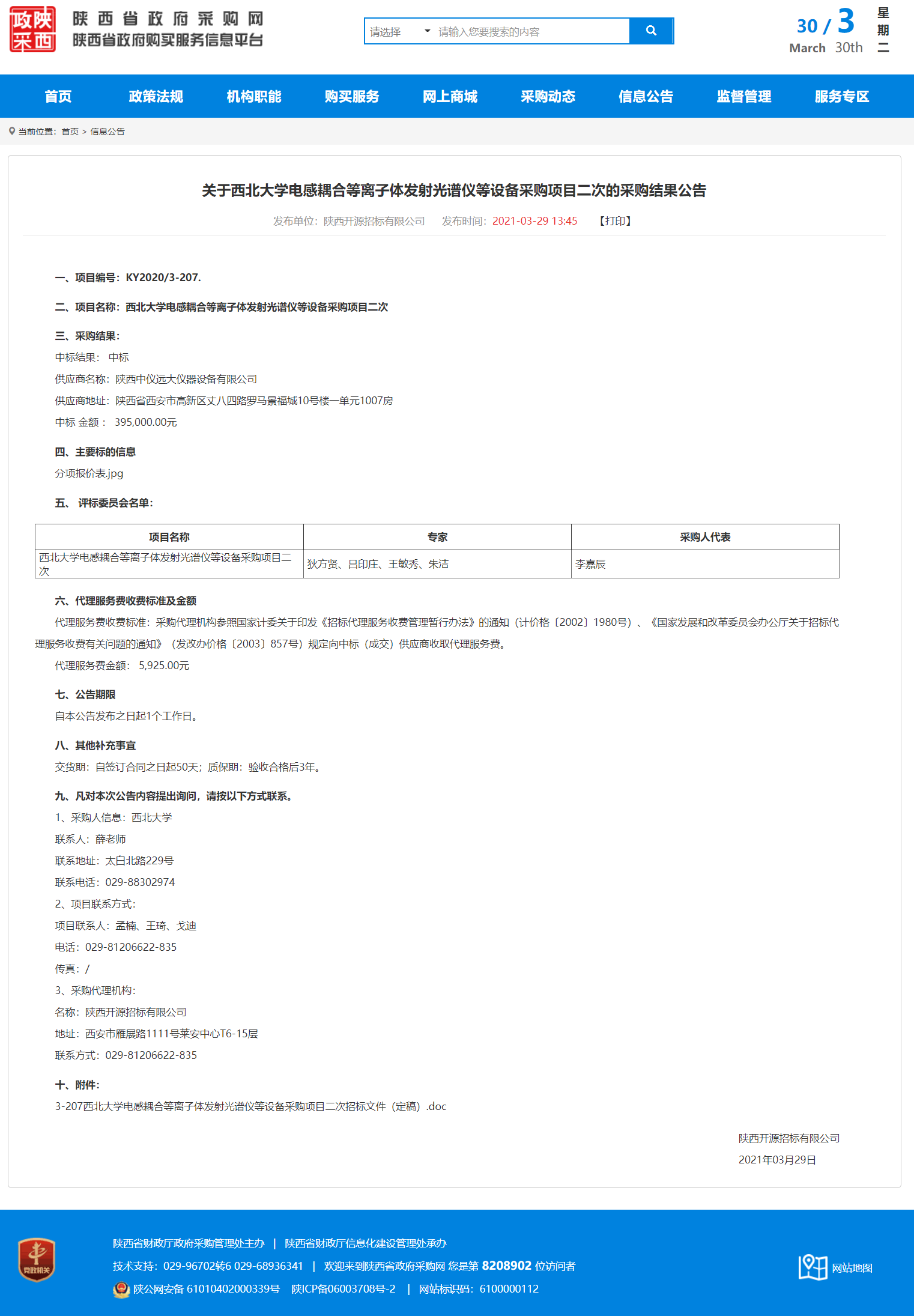 MK在线电感耦合等离子体发射光谱仪等设备采购项目二次的采购结果公告