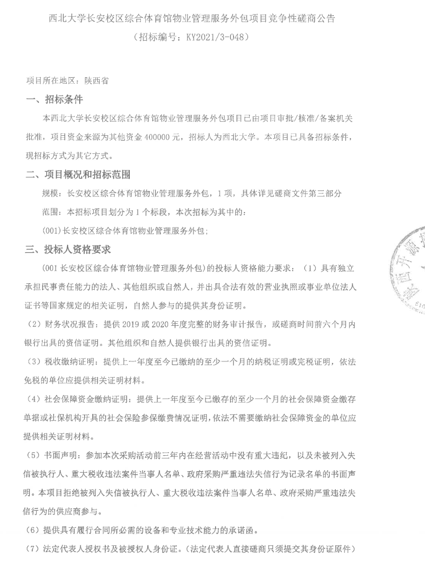 MK在线长安校区综合体育馆物业管理服务外包项目竞争性磋商公告