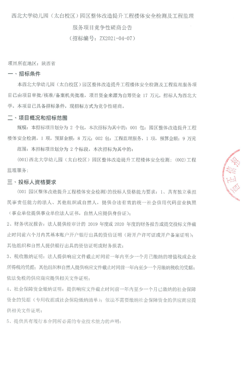 MK在线幼儿园(太白校区)园区整体改造提升工程楼体安全检测及工程监理服务项目