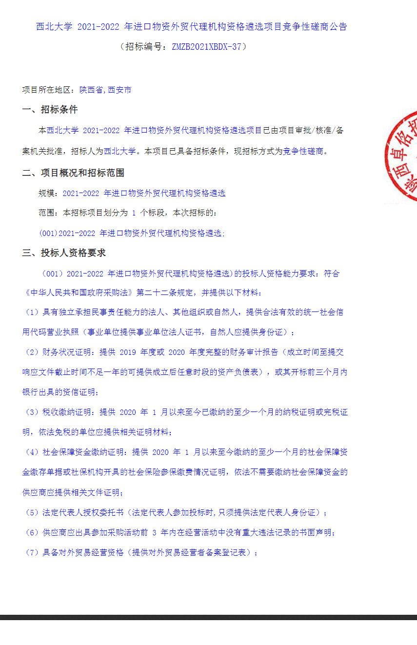 MK在线2021-2022年进口物资外贸代理机构资格遴选项目竞争性磋商公告