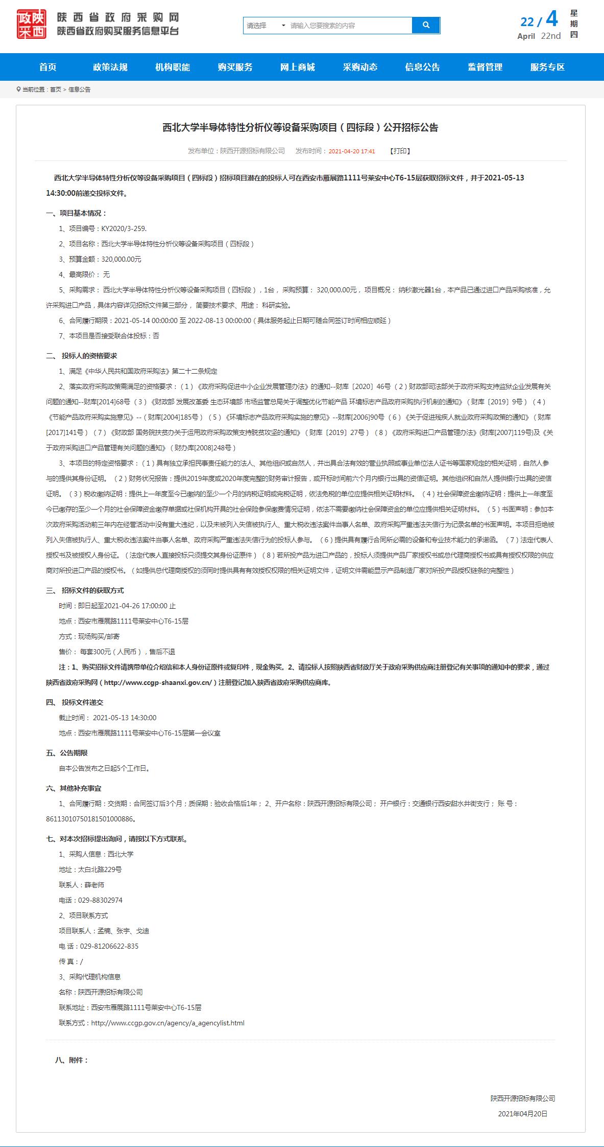 MK在线半导体特性分析仪等设备采购项目(四标段)公开招标公告