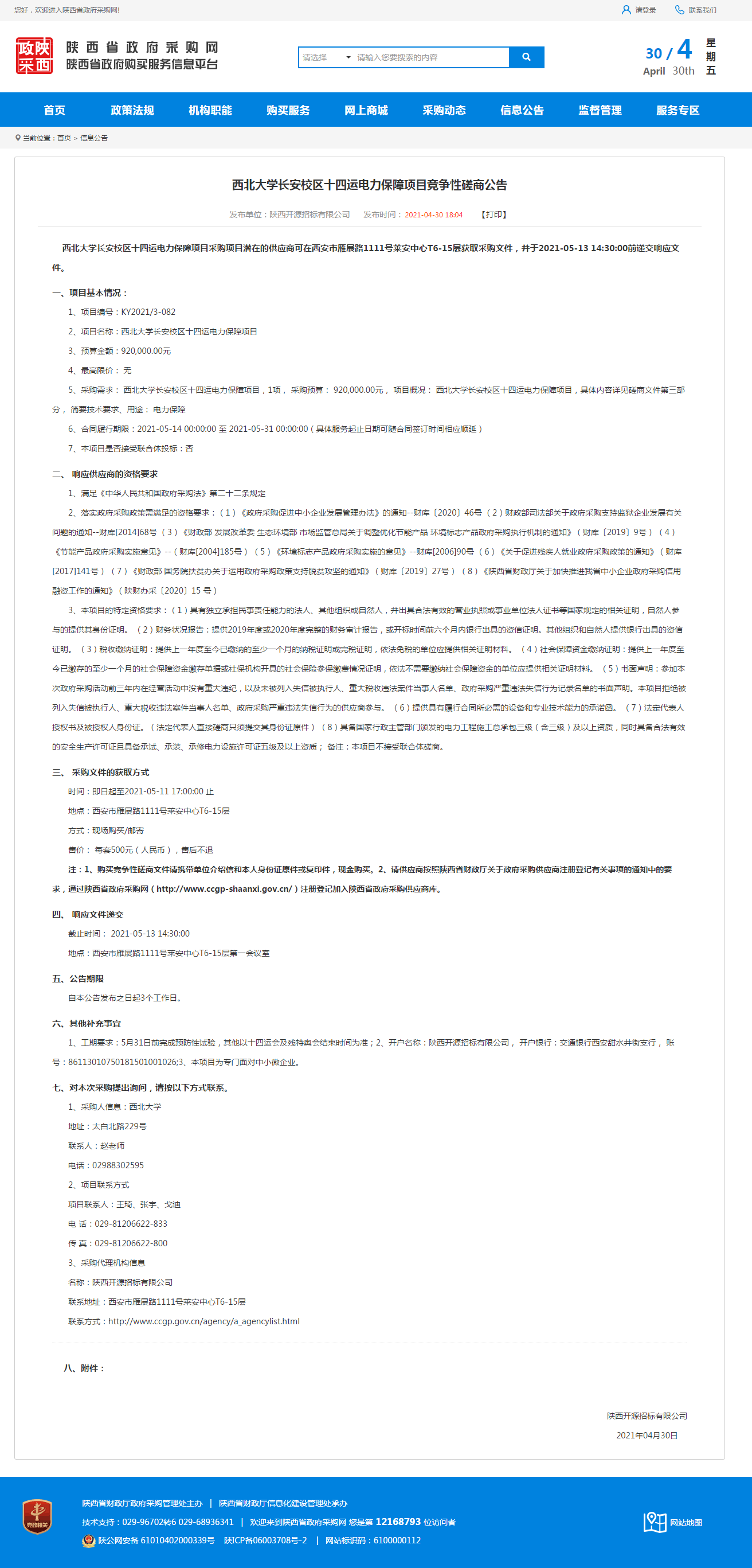 MK在线长安校区十四运电力保障项目竞争性磋商公告