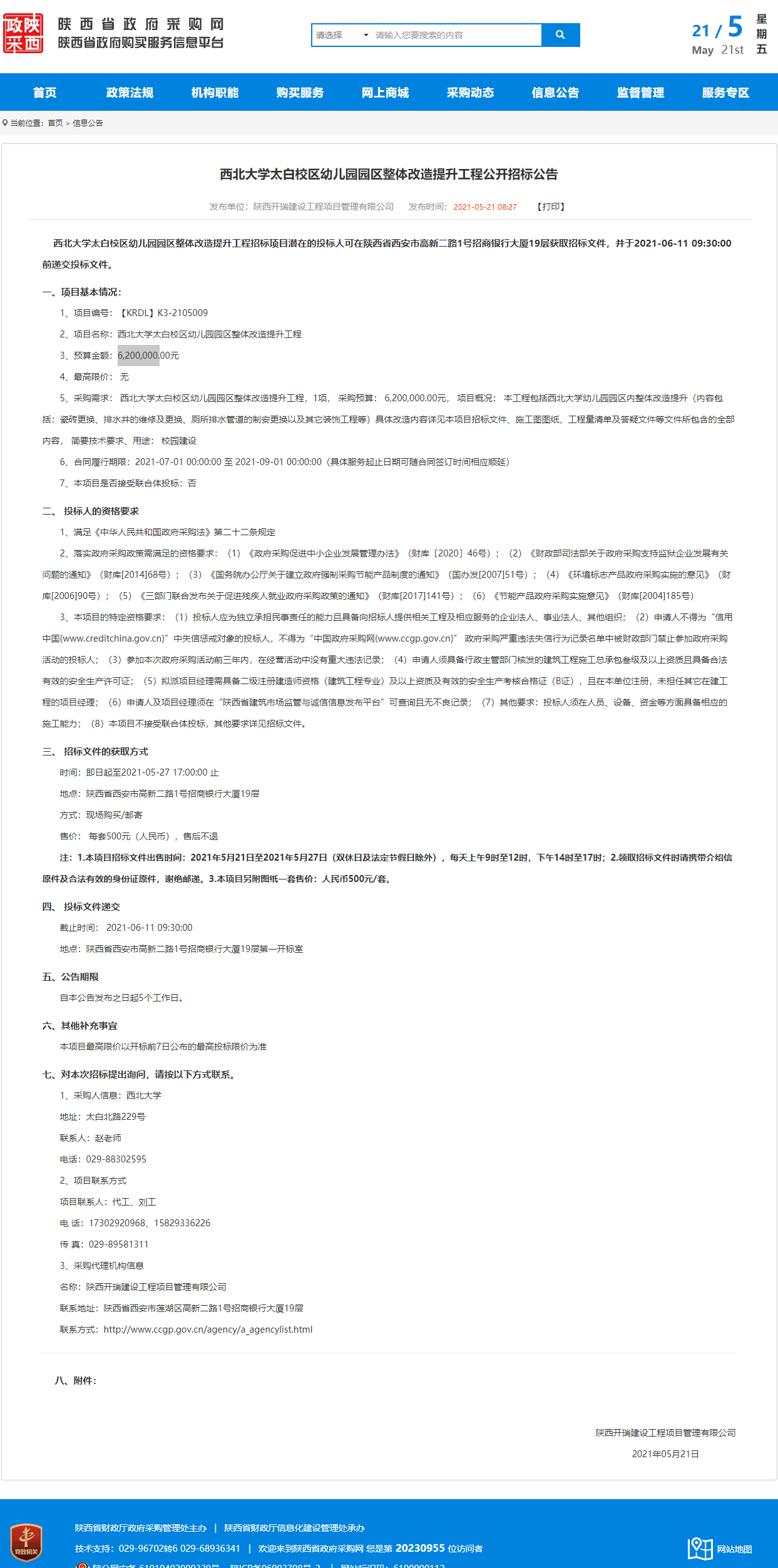 MK在线太白校区幼儿园园区整体改造提升工程公开招标公告