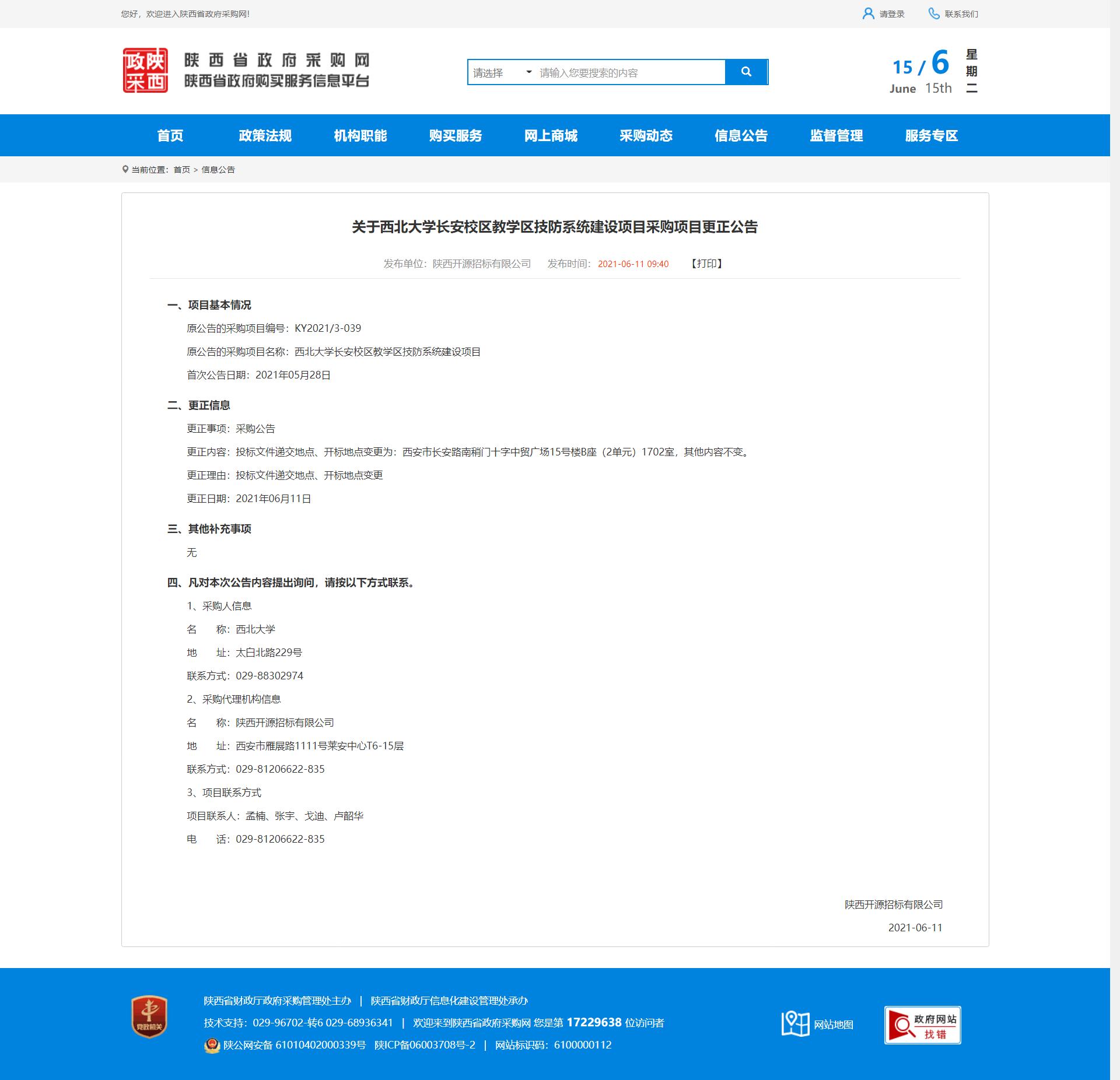 关于MK在线长安校区教学区技防系统建设项目采购项目更正公告 作者: 编辑:薛利娟 时间:2021-06-15 原公告地址:http://www.ccgp-shaanxi.gov.cn/notice/noticeDetail.do?noticeguid=8a85be33791baa0f0179f8ab30151d42