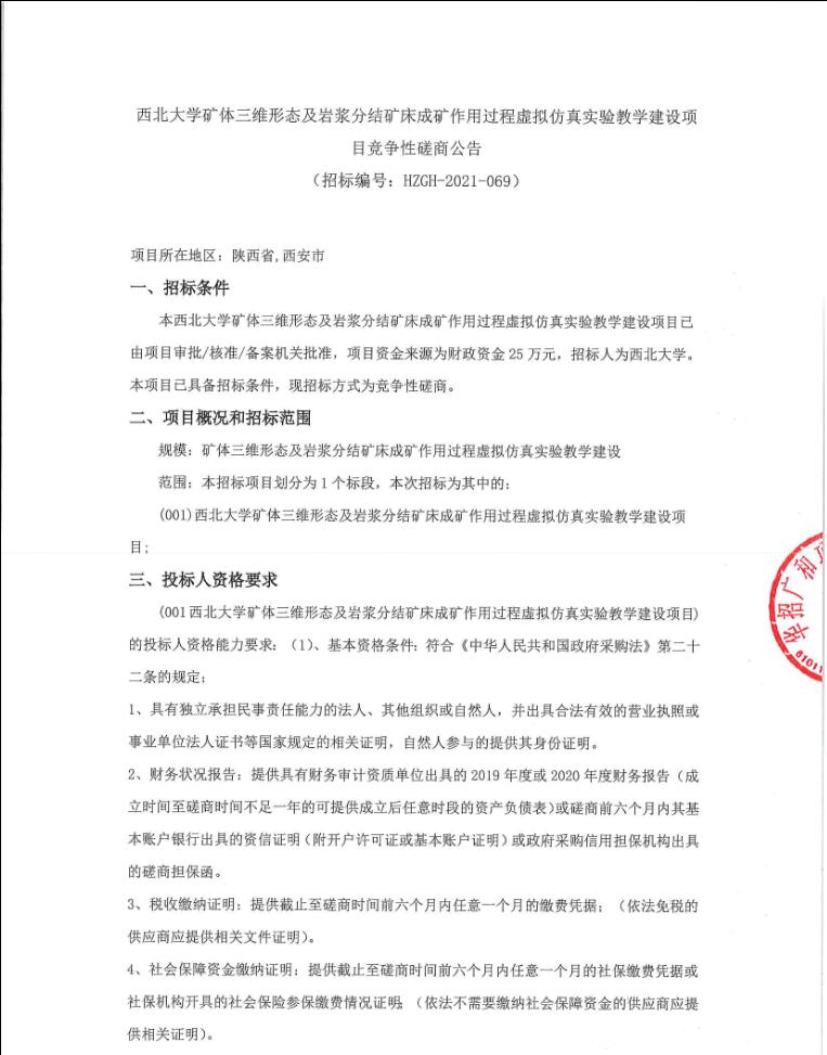 MK在线矿体三维形态及岩浆分结矿床成矿作用过程虚拟仿真实验教学建设项目竞争性磋商公告
