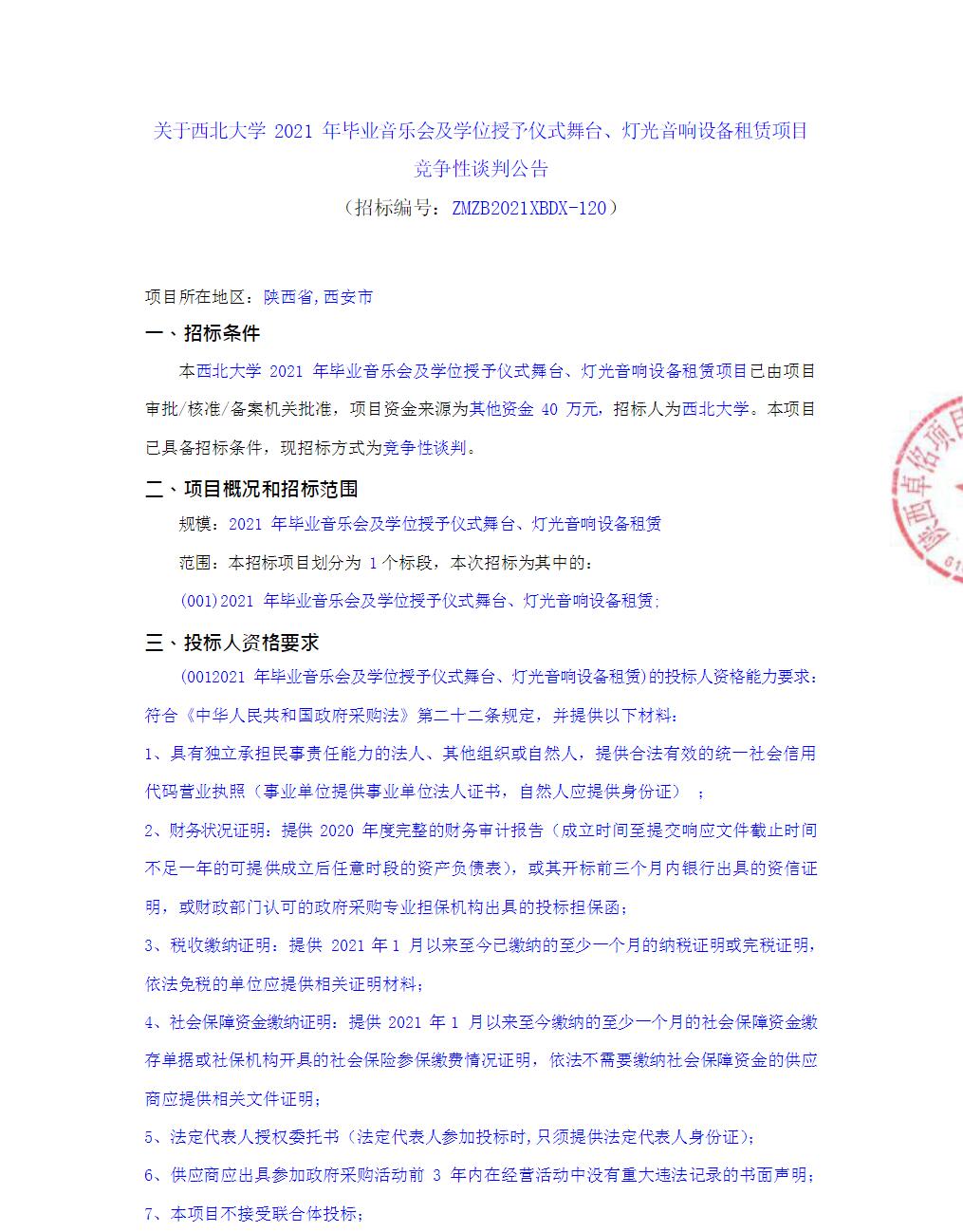 MK在线2021年毕业音乐会及学位授予仪式舞台、灯光音响设备租赁项目竞争性谈判公告