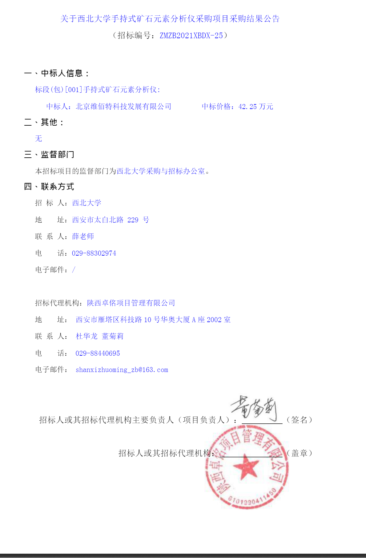 关于MK在线手持式矿石元素分析仪采购项目采购结果公告